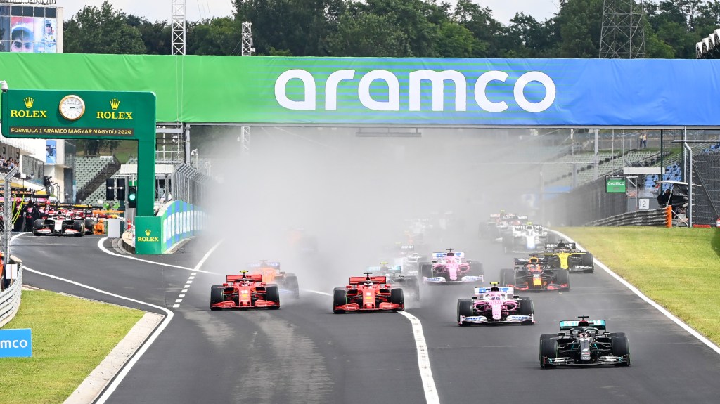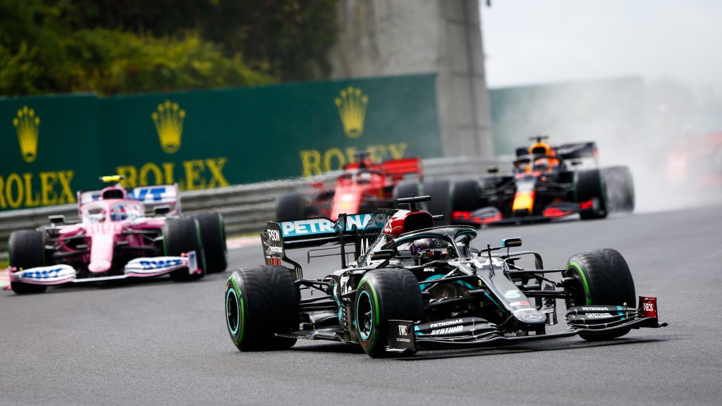 Contrary to most expectations, we had a post-rain qualifying session around the tight and twisty Hungaroring circuit. Both the black and pink Mercedes were clearly a step ahead of the competition in terms of sheer pace. Hamilton’s only rival for that pole position spot was his teammate and Bottas ended up being more than a tenth slower. The next fastest time in Q3 was set by Lance Stroll who was almost a second slower than Lewis and was joined by Sergio Perez for an all-pink second row. After the nightmare around Austria, Ferrari seemed to have good pace in qualifying with their aero updated but could only manage a third row start with Sebastian Vettel being quicker than Charles Leclerc. Verstappen was the seventh fastest and based on the radio clips that were broadcast, the Red Bull was struggling for pace in Budapest. Both McLarens made it into Q3 with Lando Norris just a bit quicker to start ahead of Carlos Sainz as they started 8th and 9th respectively. Pierre Gasly just about managed to get into Q3 in his Honda-powered AlphaTauri but the car wasn’t fit enough to put a lap in and would start 10th. The team put in a new powertrain for the car that lined up for the start of the race but since they were still within the allowed number of units, they did not invite any grid penalty.