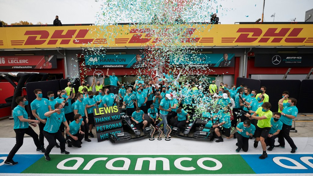 Albon’s spin put him at the back of the grid and Red Bull out of the points. In the space of 9 laps, the team had gone from a P2 result to a 0 point result. It was the exact opposite for Mercedes as Lewis Hamilton crossed the finish line to victory at Imola and with Bottas in P2, the team secured their 7th Constructor’s World Championship title in a row, a new record in the history of F1. The two blacked-out silver arrows drove in formation till parc ferme to celebrate the team’s great achievement.