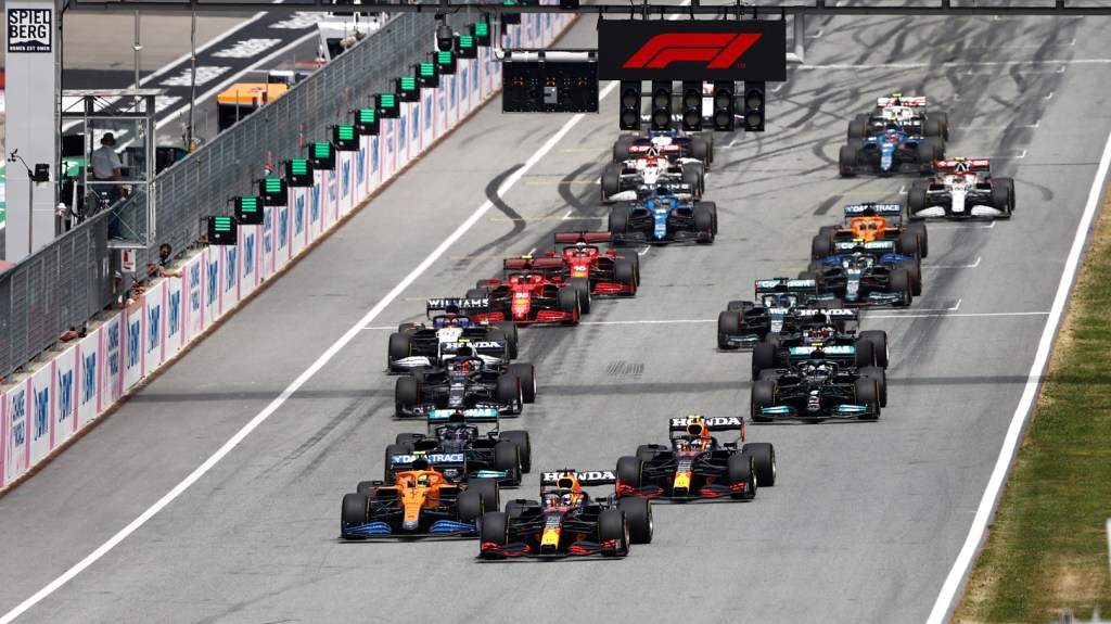 Max had a rough session in Q3, running out in front for the final run, but was able to keep Pole position by just under 0.04 of a second. He was joined on the front row by Lando who’d just scored his career-best qualifying result. Sergio started third on the grid, two-tenths slower than his teammate and shared the second row with Lewis Hamilton who still hadn’t broken into the 1:03s at the Red Bull Ring this year. Bottas was a few hundredths slower to start fifth. It’d been a great qualifying result for AlphaTauri with Pierre Gasly who placed himself sixth on the grid again and Yuki Tsunoda was seventh fastest. Sebastian Vettel seemed to have found some pace and qualified eighth fastest while teammate Lance Stroll was tenth fastest. But the second-biggest qualifying story was of George Russell who had broken through to Q3 for the first time in a Williams and was ninth fastest. Since Vettel picked up a 3-place grid penalty for impeding Fernando Alonso which allowed Russell to start from the fourth row.