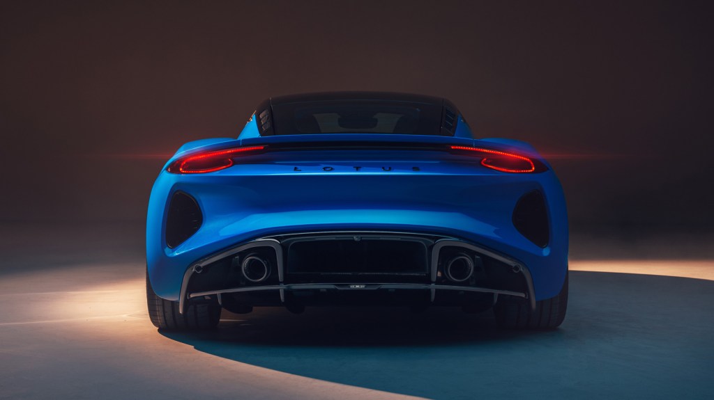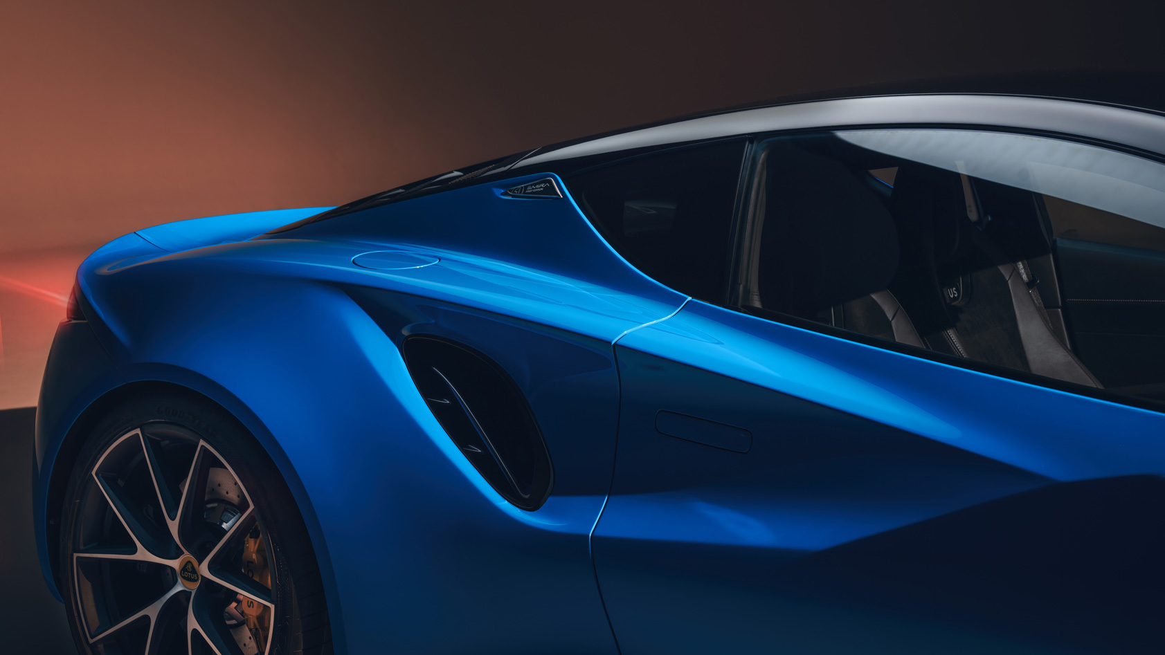 The large air dam up front feeds air to the intercoolers and it is then evacuated via the slits in the bonnet in a controlled manner to direct the air where needed. Other vents in the front also help channel cooling air to the front brakes. There are strong character lines along the sides of the Emira which also help channel the air around the car. Side pods behind the doors, housed in the rear haunches, will feed air to the engine while cleverly hidden inlets in the side sills channel air to the rear brakes. There’s also a sizeable rear diffuser which also houses the two, round exhaust tips with a perforated design.