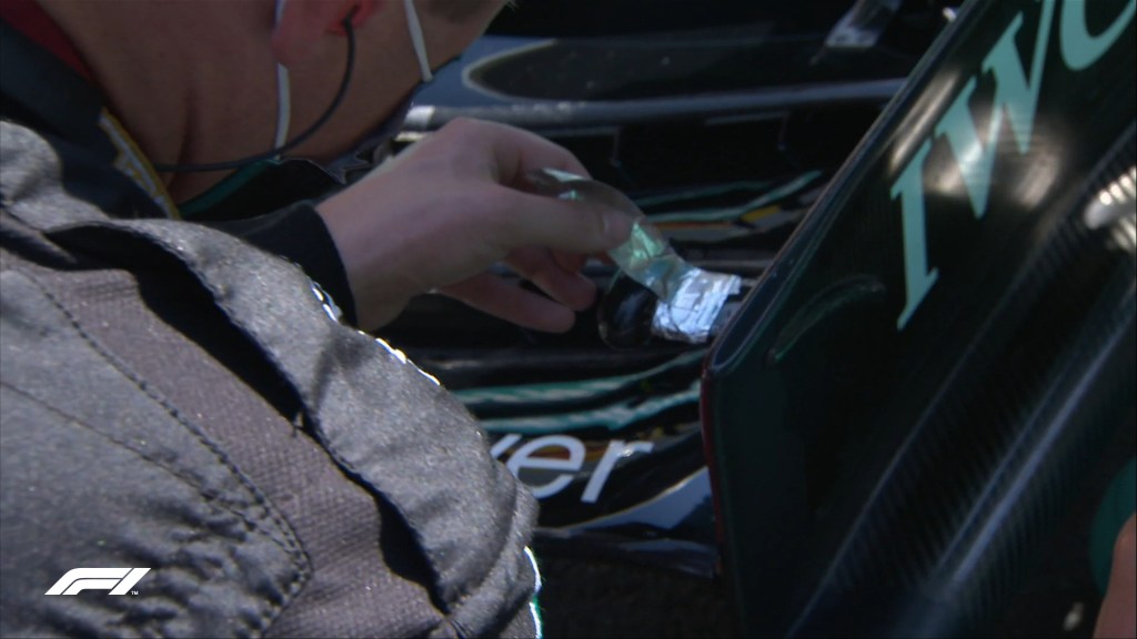 Repairs on Hamilton’s front wing