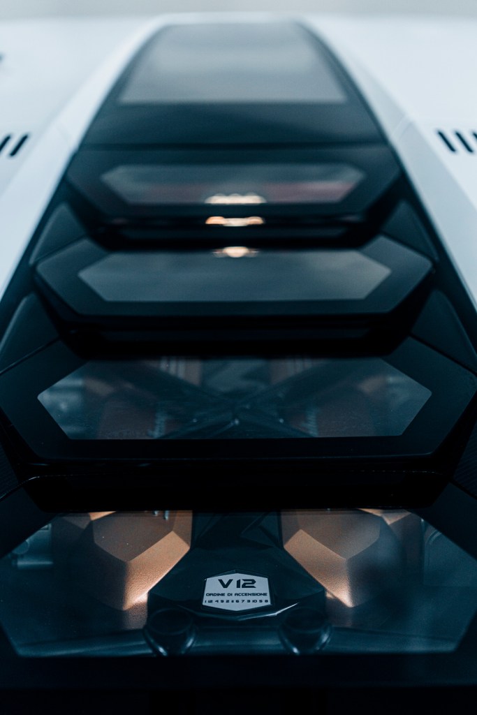 Meanwhile, the three-part taillamps look identical to the ones found on the Sian but also feature vents underneath to help dissipate turbulent air off the phat rear wheels. The quad-exit exhaust design is directly inspired by the original but it sits a lot higher here thanks to the design of the carbon fibre rear diffuser.