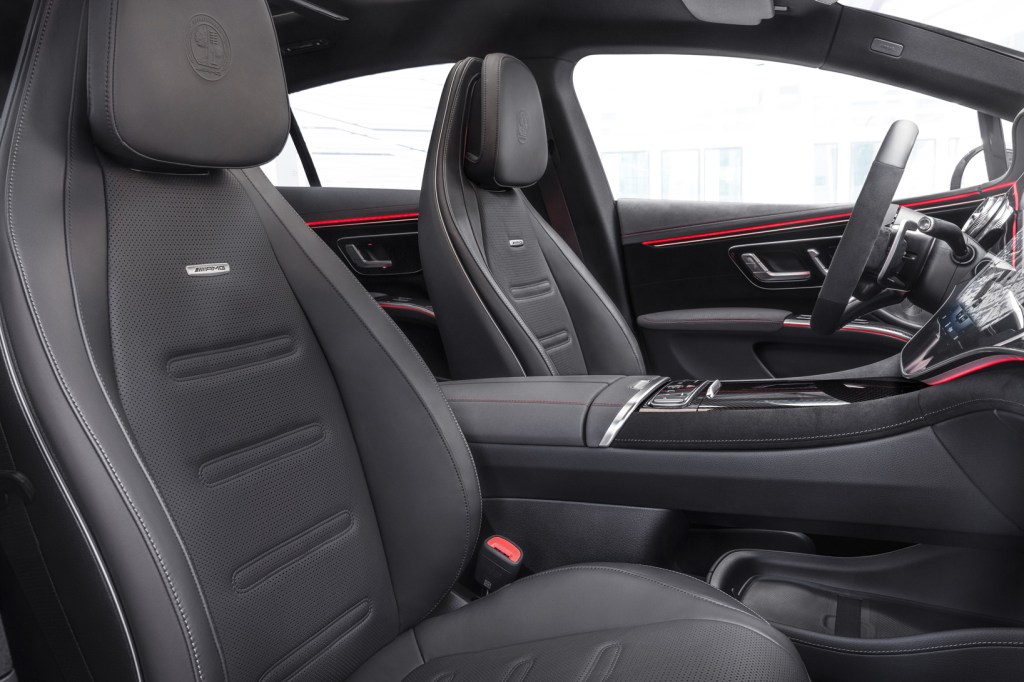 The interior isn’t that different either but gets AMG-specific displays and functions, an AMG performance steering wheel, AMG branding around the cabin, and AMG sports pedals. It’s still quite luxurious with its leather upholstery, extensive cabin comforts, and the 55-inch MBUX hyperscreen that spans the width of the dashboard. While we have bemoaned the muted sounds of newer AMG models due to smaller engines and emission regulations, the EQS 53 is close to silent. That simply will not do for an AMG, not even an electric one. So, Mercedes engineered some driving sounds to be pumped into the cabin depending on the mode selected. Use the “Race Start” mode and you’ll hear sounds of electric motors spooling up like a sci-fi spaceship about to enter hyperspace. With the optional AMG Dynamic Plus package that increases the performance on offer, you also get more sounds for other vehicle functions like door locks, starting/stopping the drive system and even the clicking of indicators.