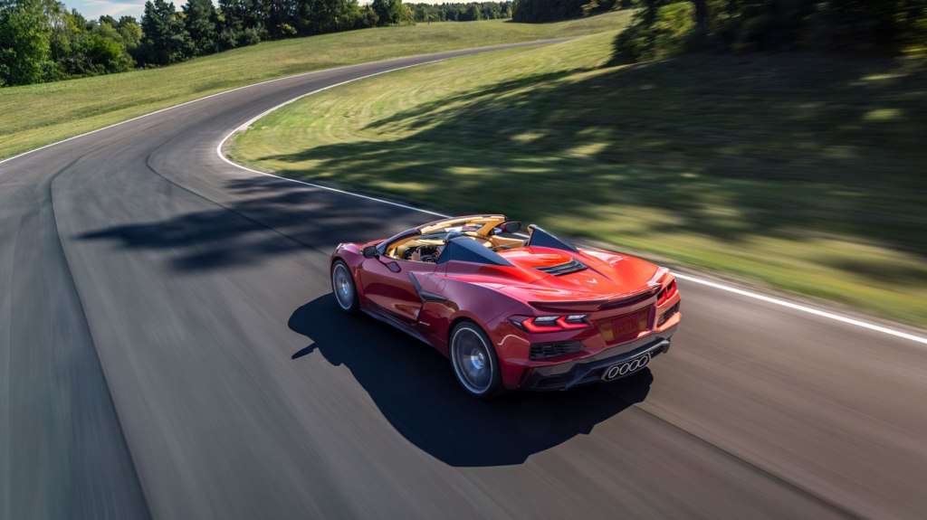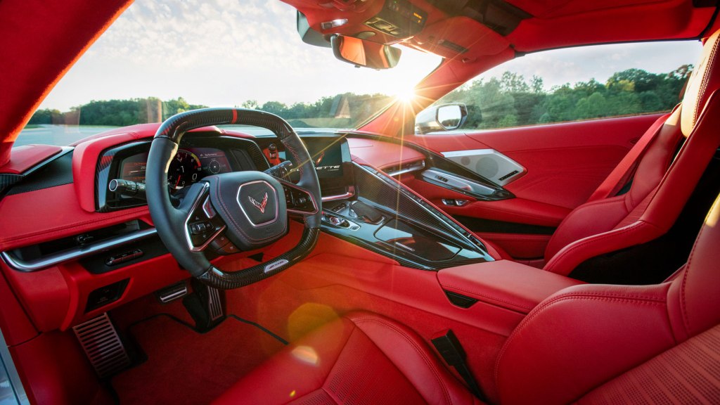 The realists may argue that the C8 Z06 still won’t be as quick as a 992-gen Porsche 911 GT3 RS around a circuit, or handle like a McLaren, or hold a candle to the drama of a Huracan STO‘s screaming V10. But I’d counter that it’s going to make you smile a lot more often and the sound of that naturally-aspirated, high-revving V8 is a key part of that. The European alternatives of today offer similar performance using turbochargers and hybrid V6s (like the McLaren Artura and Ferrari 296GTB), while other raucous V8s lack the power and handling of the new Corvette Z06 (like the Jaguar F-Type SVR). We wager that even the Mustang Shelby GT500, with its front-engined layout, will struggle to keep up with the new Z06 around a track.