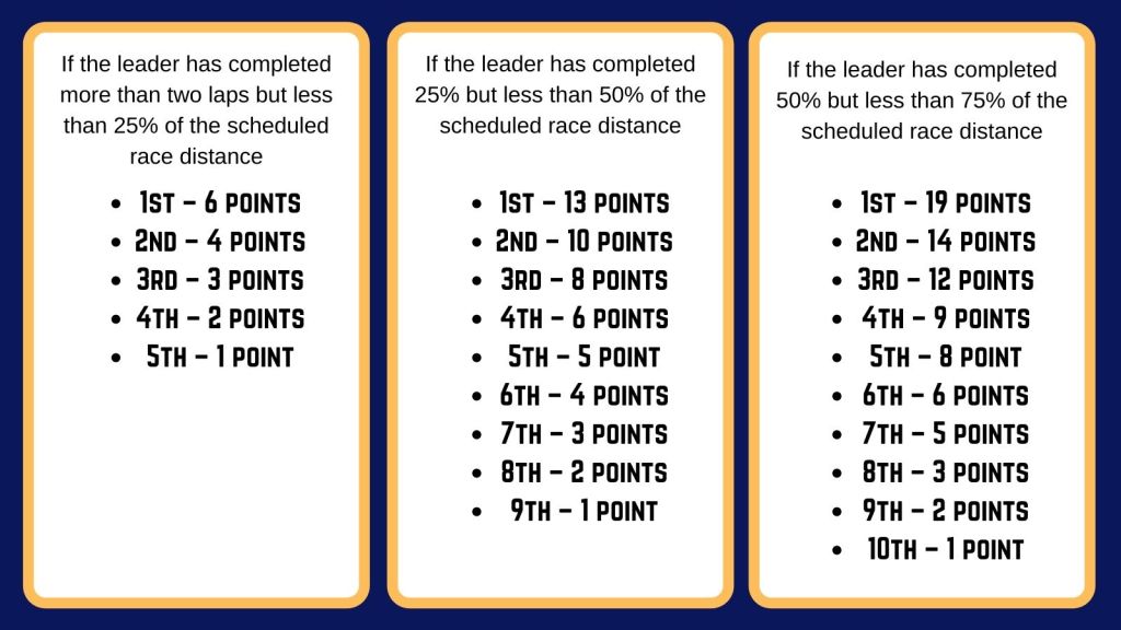 No points will be awarded unless a minimum of two laps have been completed by the leader without a Safety Car and/or Virtual Safety Car intervention.