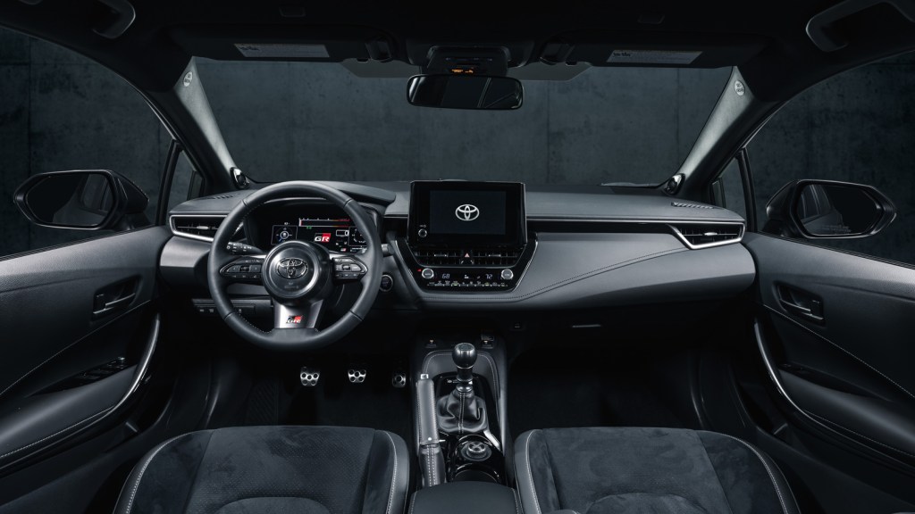 The cabin features a decently premium upholstery with GR branding and sporty red stitching. It gets a 12.3-inch digital driver’s display with model-specific readouts, an 8-inch central touchscreen for the infotainment system, and Toyota’s suite of ADAS safety tech. There is enough simplicity and comfort on offer that you could easily use it for school runs or long stretches on the highway.