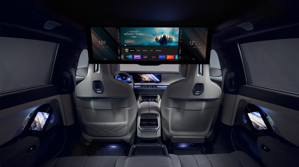 Compared to the Mercedes MBUX Hyperscreen in the EQS with three-large displays under a single glass surface, the BMW Theatre Screen seems like a much more useful modern feature.
