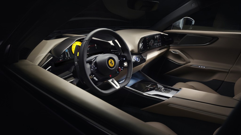 The Purosangue debuts Ferrari’s new active air suspension technology (or FAST for short) with electric motor actuation. Integrated into each damper, this technology actively controls the wheels and the body to ensure the car stays flat as possible irrespective of the undulations or changes in direction. For extra credit, the clever new Ferrari suspension uses components developed by race-renowned Multimatic. Combined with rear-wheel steering and Side Slip Control 8.0 (Ferrari’s traction control and torque vectoring program), the Purosangue should be capable of defying physics when tested on a circuit. The rear-bias AWD setup should also make it fairly drift-friendly.