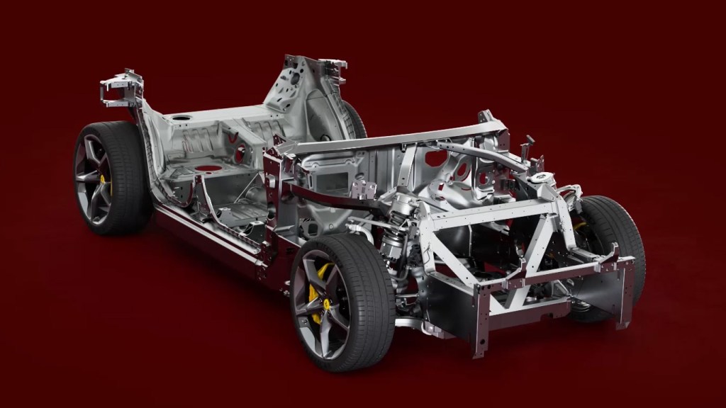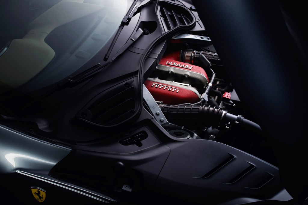 Codenamed F140IA, this engine has a lot of new and or repositioned components. These modifications help achieve the kind of power delivery required from a relatively relaxed type of car, such as 80% of peak torque from just 2100rpm. Included are cylinder heads from the 812 Competizione, the most bonkers V12 car in Ferrari’s latest lineup.